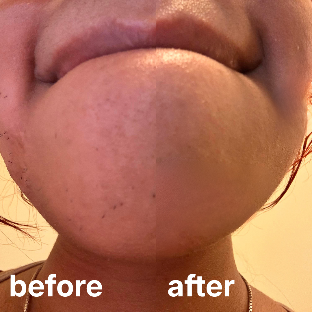 ✓ Works on chin, upper lip, jawline, bikini, underarms, belly & legs
